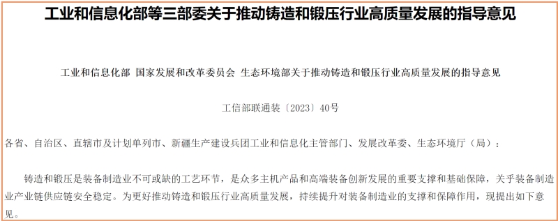 海威(墨西哥)公司壓鑄項目一期投產 在全球一體化的浪潮之下,隨著中國企業實力不斷增強,國內壓鑄企業正在爭先恐后地踏上全球化之路。泉峰汽車、拓普集團、文燦集團、愛柯迪、敏實集團、嶸泰股份、蕪湖伯特利、吉岡精密、萬豐奧威、寧波海威、渤海汽車等國內知名企業紛紛進軍海外市場(尤其是北美、歐洲、東南亞地區),通過獨資建廠、合資建廠、海外并購等多種途徑來實施國際化戰略。 TOP 2 三部委發文:取消長三角、京津冀等重點區域壓鑄及鑄造產能限制 2023年3月30日,工業和信息化部、國家發展和改革委員會、生態環境部三部委發布“關于推動鑄造和鍛壓行業高質量發展的指導意見”。關于鑄造行業,指導意見提出,到2025年,鑄造(含“壓鑄”——本刊注釋)行業總體水平進一步提高,保障裝備制造業產業鏈供應鏈安全穩定的能力明顯增強。產業結構更趨合理,產業布局與生產要素更加協同。