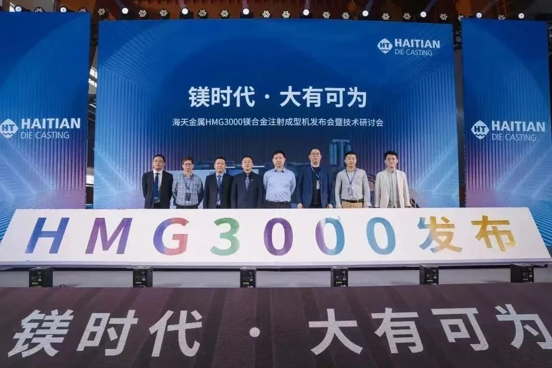 錫南科技登陸A股 另外,2023年2月27日上午,滁州多利汽車科技股份有限公司在深圳證券交易所主板上市,證券簡稱:多利科技,證券代碼:001311。多利科技成立于2010年,主要從事汽車沖壓件、壓鑄件及相關模具的開發、生產、銷售。2023年3月31日,無錫日聯科技股份有限公司首次公開發行股票并在上交所科創板上市。股票名稱:日聯科技,股票代碼:688531。日聯科技成立于2009年,主要從事高端X射線檢測儀器和裝備的研發、生產、銷售與服務。日聯科技的產品和技術廣泛應用于壓鑄及鑄造行業。 TOP 4 大型半固態鎂合金注射成型機新突破,助推鎂合金材料應用推廣 2023年5月12日上午,海天金屬HMG3000鎂合金注射成型機發布會在海天金屬保稅區基地舉行。HMG3000 鎖模力高達3000T(噸),最大螺桿直徑達到150mm,理論注射量超過10kg,是目前行業最大的半固態鎂合金注射成型機之一。使得鎂合金注射成型機的噸位由1000多噸躍升至3000噸。HMG3000為大尺寸鎂合金的多聯屏顯示背板、座椅骨架、車內門板等產品的生產提供解決方案。