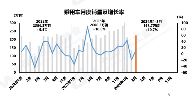 ![]() 4月10日,中國汽車工業(yè)協(xié)會發(fā)布的最新數(shù)據(jù)顯示,今年一季度,汽車行業(yè)經(jīng)濟運行開局穩(wěn)健,成績亮眼。3月,汽車產(chǎn)量與銷量分別達到268.7萬輛和269.4萬輛,環(huán)比分別激增78.4%和70.2%,同比也有4%和9.9%的增長。 分析指出,春節(jié)后新車紛紛上市,車展等線下活動接連開展,同時部分地區(qū)推出的以舊換新等優(yōu)惠政策,共同推動了汽車銷量的快速增長。其中,新能源汽車繼續(xù)展現(xiàn)強勁的增長勢頭,市場占有率穩(wěn)定保持在30%以上。此外,整車出口也維持了較高的水平,為行業(yè)的整體增長貢獻了積極力量。 詳細數(shù)據(jù)顯示,3月,汽車產(chǎn)量與銷量均實現(xiàn)了顯著增長。1-3月,汽車總產(chǎn)銷量分別達到了660.6萬輛和672萬輛,同比均實現(xiàn)了超過10%的增長,為一季度畫上了圓滿的句號。 在乘用車領域,3月的產(chǎn)銷表現(xiàn)同樣出色。產(chǎn)量和銷量分別完成225萬輛和223.6萬輛,環(huán)比均實現(xiàn)了大幅增長,同比也呈現(xiàn)出積極的增長態(tài)勢。1-3月,乘用車累計產(chǎn)銷量均實現(xiàn)了超過10%的同比增長。