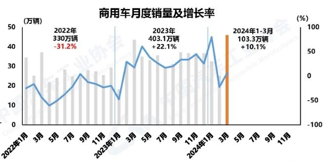 商用車方面,3月產(chǎn)銷也有所回暖,環(huán)比均實現(xiàn)大幅增長,同比也呈現(xiàn)出正增長。1-3月,商用車累計產(chǎn)銷量也均實現(xiàn)了同比增長。