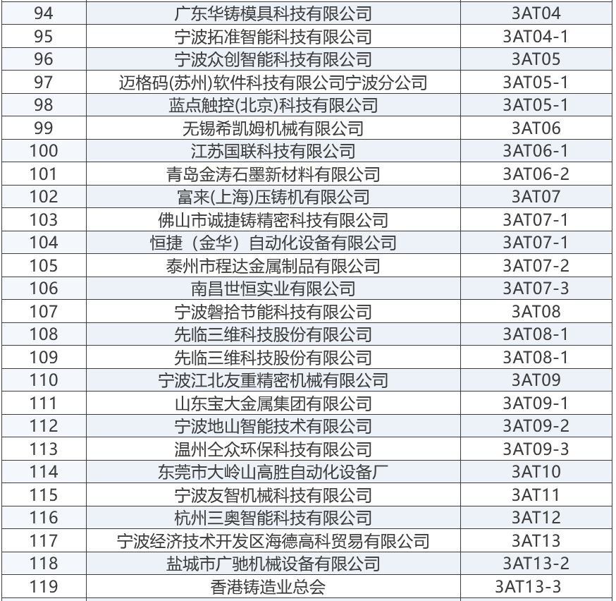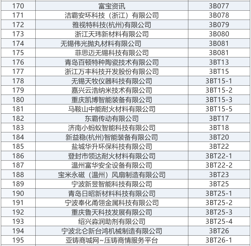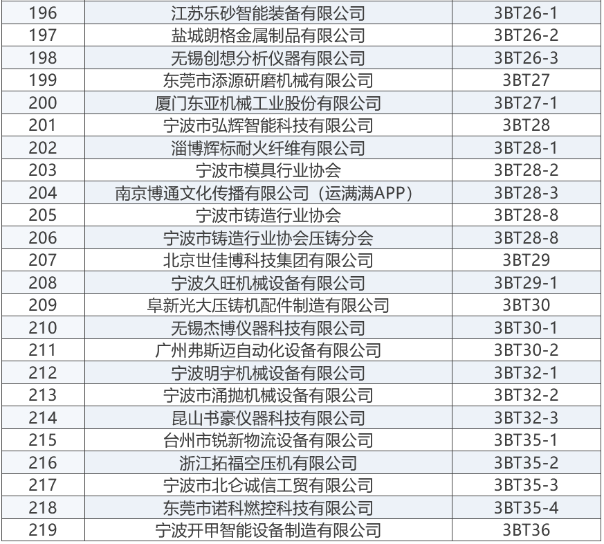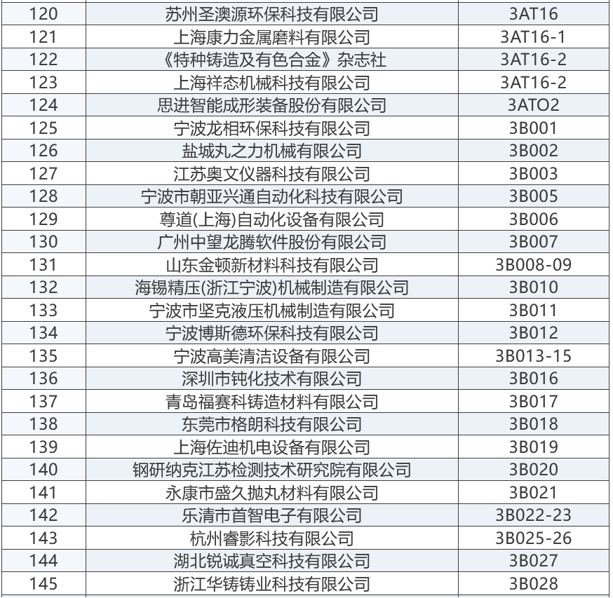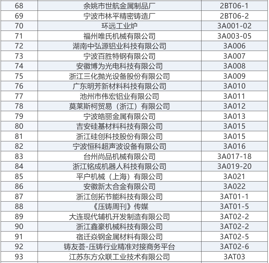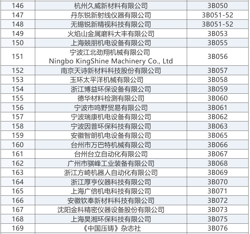 上屆展會部分參展商 “2025寧波國際鑄造鍛造及壓鑄工業展覽會”將成為浙江地區鑄造與壓鑄行業的一大盛事,為鑄造、鍛造及壓鑄行業的交流與合作搭建起一座重要的橋梁。與此同時,寧波國際金屬冶金工業展覽會,將與“2025寧波國際鑄造及壓鑄展”同期舉辦,可形成資源共享、相得益彰之勢。 展商名錄