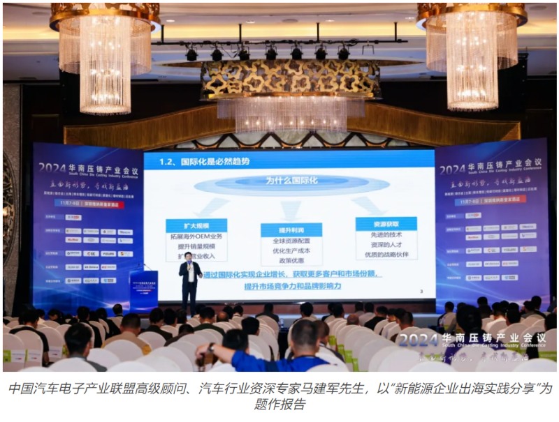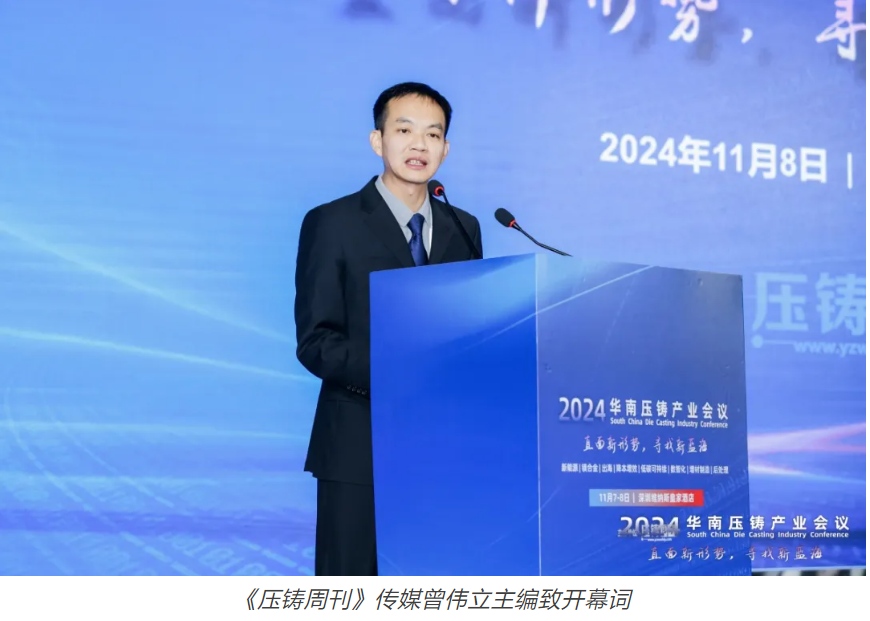 2024年11月7日-8日,“2024華南壓鑄產業會議”在深圳維納斯皇家酒店隆重舉行。本次會議由行業知名媒體《壓鑄周刊》傳媒主辦,以“直面新形勢,尋找新藍海”為核心議題,旨在匯聚全國壓鑄行業的優質資源,打造華南地區壓鑄界一流的交流平臺。 來自行業學會/協會領導、壓鑄產業鏈上下游企業及汽車等應用終端企業代表及專家、科研院校專家教授、專業媒體記者等450余名專業人士齊聚一堂,共襄盛舉。主辦方精心設計了一系列豐富精彩的活動,包括主題報告演講、鎂合金技術專題論壇、對話行業領袖圓桌訪談、汽車鑄造俱樂部活動、特色品牌展示、交流晚宴、名企參觀等,旨在通過專業會議平臺,匯聚全行業的力量,共同探討當前形勢下壓鑄企業未來的發展方向。