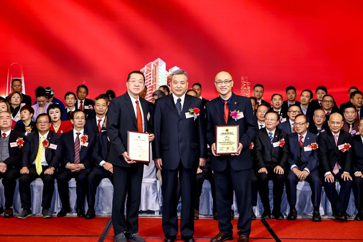周強司長為香港鑄造業總會秘書長陳慶生(右一)、司庫黃曄(左一)頒發委任狀