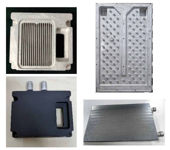 創(chuàng)新產(chǎn)品優(yōu)勢(shì) 使用特殊專利材料CSY33,通過相應(yīng)的模具設(shè)計(jì),經(jīng)壓鑄成形和各種機(jī)加工,并通過釬焊形成密閉腔體的水冷板。該合金在壓鑄態(tài)下抗拉強(qiáng)度>160MPa,屈服強(qiáng)度>100MPa, 維氏硬度>HV52,延伸率>8%(與擠壓型材6系合金同),導(dǎo)熱系數(shù)>150w/m.k,可以實(shí)現(xiàn)復(fù)雜結(jié)構(gòu)一次成型和精密壓鑄,組織結(jié)構(gòu)致密,無后續(xù)加工變形隱患,形成密閉腔體后在一定壓力狀態(tài)下無泄漏。采用鋁合金壓鑄工藝制備復(fù)雜結(jié)構(gòu)可釬焊高導(dǎo)熱的水冷板,大幅度提高生產(chǎn)效率,降低生產(chǎn)成本(40%)。 專利情況 鋁合金及其制備方法、壓鑄件;ZL2021 1 11 37070.8 經(jīng)濟(jì)效益