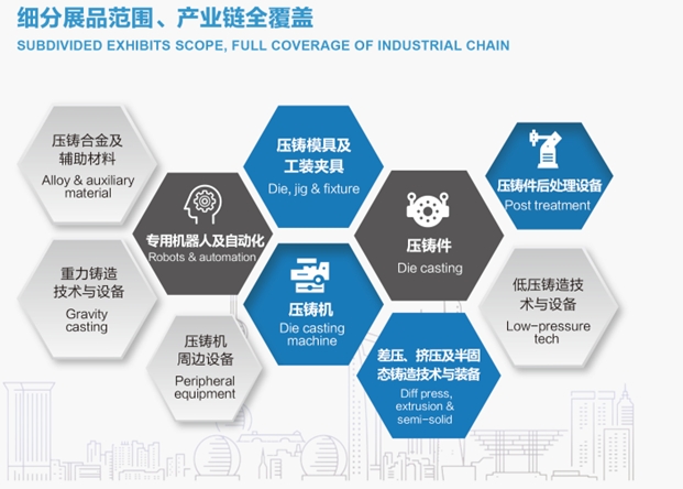 在京津冀協同發展戰略的引領下,天津汽車及新能源汽車產業正以前所未有的速度發展,形成了強大的產業鏈集群效應,并以高端形象面向全國市場。 ·品牌展會優勢· 作為國內壓鑄&有色領域的品牌展會,“中國國際壓鑄&有色展”匯聚了來自海內外的壓鑄有色及上下游杰出企業,將全面展示鑄造輕量化發展的新產品和新工藝,交流新技術和新理念,促進行業的創新與發展。 涵蓋有色鑄造全材質·全工藝·全產業鏈