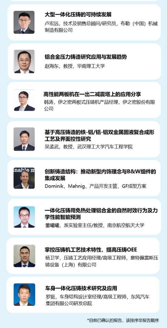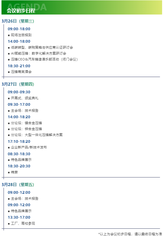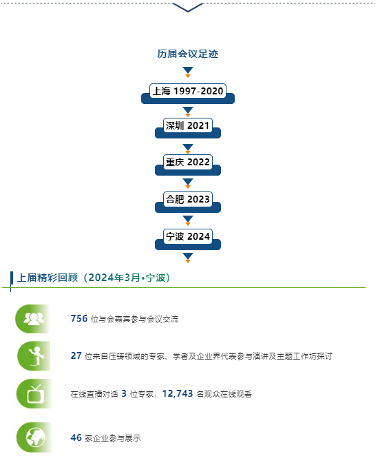 ![]() 2025年全國壓鑄行業(yè)年會—第二十屆中國國際壓鑄會議將于3月26-28日在南京富力萬達(dá)嘉華酒店舉辦,旨在匯聚全球?qū)W術(shù)界、企業(yè)界、車廠等各方力量,搭建一個高端對話與合作的平臺。會議以“鏈動全球壓鑄”為目標(biāo),與全球壓鑄同仁一起剖析壓鑄行業(yè)最新發(fā)展趨勢,探討競爭格局,為行業(yè)未來發(fā)展提前布局、科學(xué)規(guī)劃提供一些思路。誠邀壓鑄同仁蒞臨參會!
