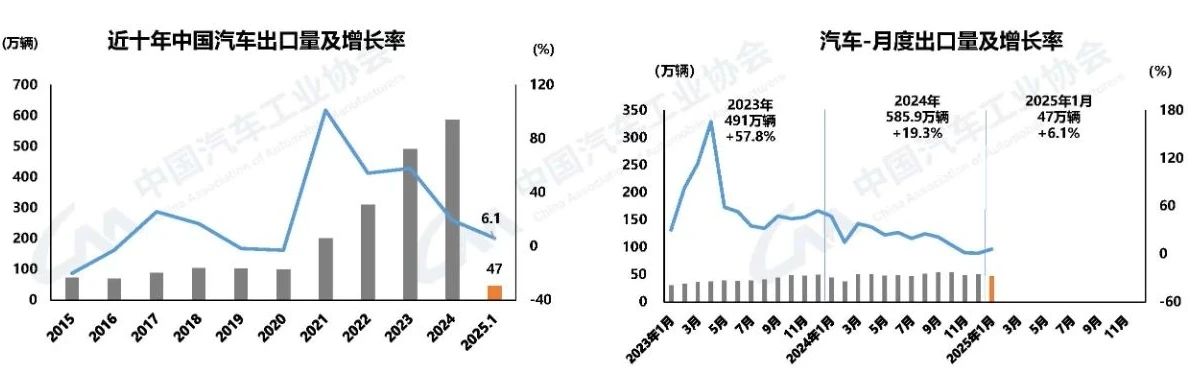 在出口方面,1月我國汽車出口總體達(dá)到47萬輛,同比增長6.1%。其中,新能源汽車出口15萬輛,同比增長49.6%。