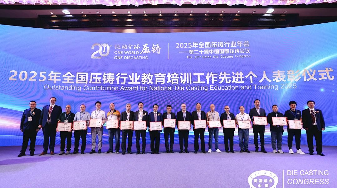 劉鴻超秘書長 以教育之強,鑄就行業之魂 2025 年全國壓鑄行業教育培訓工作先進個人表彰儀式 人才是驅動壓鑄行業創新與變革的第一資源,更是實現“制造強國”戰略的核心動能。中國機械工程學會鑄造分會依照國家有關政策,以促進我國壓鑄人才成長和科學發展為宗旨,積極開展壓鑄工程技術人員培養和工程能力水平評價工作,目前已在江蘇、浙江、重慶、廣東、遼寧、福建、山東等地設立“壓鑄專業技術人員繼續教育基地”,己完成500余人次的培訓和評價工作,系統性破解行業工程技術人員“專業能力”評價難題。培訓工作得到行業廣泛的支持,尤其要感謝各位教育培訓專家的辛勤奉獻。在年會開幕式上,中國機械工程學會鑄造分會理事長、中國機械科學研究總院集團有限公司首席科學家、世界鑄造組織主席婁延春先生,中國機械工程學會鑄造分會副理事長、遼寧理工職業大學袁曉光副校長,邁格碼(蘇州)軟件科技有限公司大中華區總經理Moritz Weidt博士為參與此項工作先進個人頒發證書,予以表彰。