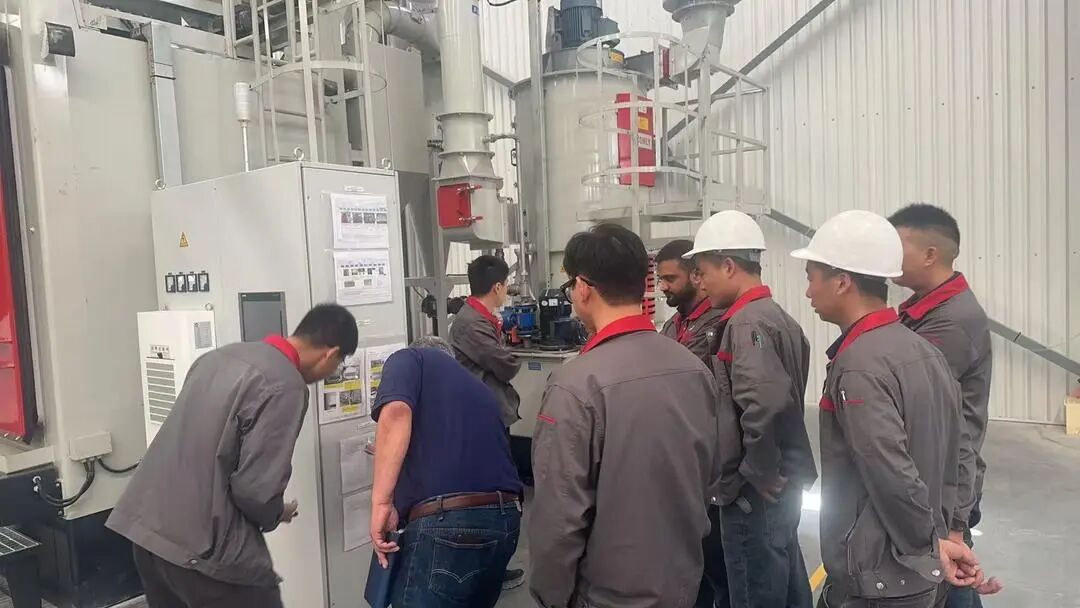 智能化產線搭建過程中,雙方員工積極探討 今年6月,薩爾蒂約工廠一期順利竣工。而人才本土化,成為保障企業持續穩定運營的關鍵。