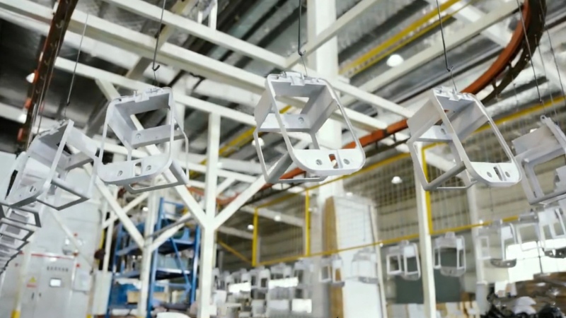 自動化噴烤生產(chǎn)線 深耕半固態(tài)技術(shù):寧走“難路”,筑牢核心競爭力 在鎂合金加工的高壓壓鑄與半固態(tài)注射成型兩條技術(shù)路線中,凱啟鎂科技選擇了門檻更高、應(yīng)用更少的半固態(tài)技術(shù)。對此,朱國棟有著清晰的考量:“壓鑄路線前期投入低、見效快,但3年后必然陷入同質(zhì)化內(nèi)卷,中小企業(yè)難以長期立足;半固態(tài)技術(shù)雖攻堅難度大,但能形成核心壁壘,契合未來市場對精細化、高品質(zhì)部件的需求。” 半固態(tài)技術(shù)的核心優(yōu)勢集中在薄壁件生產(chǎn)上。朱國棟介紹,凱啟鎂科技生產(chǎn)的1.2毫米厚度鎂合金擋泥板,重量堪比塑料,卻很好地解決了傳統(tǒng)壓鑄工藝常見的氣孔問題,成品率穩(wěn)定在95%以上,抗拉強度可達280-300MPa,力學(xué)性能與一致性顯著優(yōu)于傳統(tǒng)工藝。“2.0毫米以下的薄壁件,半固態(tài)技術(shù)具有絕對優(yōu)勢,而隨著電動自行車、人形機器人等領(lǐng)域?qū)p量化、精細化需求升級,薄壁件市場需求將持續(xù)擴大。” 為保障技術(shù)落地與規(guī)模化生產(chǎn),凱啟鎂科技在設(shè)備選型上層層篩選,最終選擇與海天智勝金屬達成戰(zhàn)略合作。“鎂合金半固態(tài)注射成型對設(shè)備的注射精度、鎖模力、響應(yīng)速度和控制系統(tǒng)穩(wěn)定性要求極高,海天作為國內(nèi)裝備制造業(yè)龍頭,其設(shè)備在穩(wěn)定性、精度和可靠性方面有口皆碑,能為我們大規(guī)模生產(chǎn)高質(zhì)量鎂合金結(jié)構(gòu)件提供堅實保障。”朱國棟透露,目前公司已有12臺半固態(tài)設(shè)備,到2月底將增至20臺,在電動自行車領(lǐng)域的設(shè)備規(guī)模位居全國前列。 多維市場布局:立足電動自行車,拓展多領(lǐng)域增長極 在市場布局上,凱啟鎂科技確立了“立足電動自行車,拓展新能源,布局前沿領(lǐng)域”的清晰戰(zhàn)略,形成多層次、階梯式的業(yè)務(wù)增長格局。