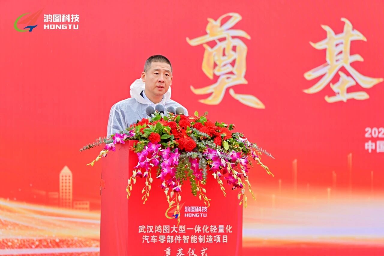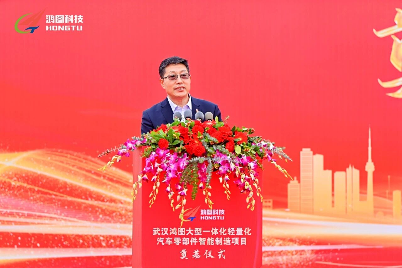 廣東鴻圖黨委書記、董事長劉衛(wèi)東致辭 廣東鴻圖黨委書記、董事長劉衛(wèi)東在奠基儀式上,對各級政府及合作伙伴的支持表示感謝。他表示,武漢是汽車工業(yè)重要戰(zhàn)略高地,十二年前鴻圖布局武漢已實(shí)現(xiàn)深度融合;此次二期項(xiàng)目是響應(yīng)國家“雙碳”戰(zhàn)略、順應(yīng)汽車產(chǎn)業(yè)發(fā)展趨勢的關(guān)鍵舉措,將引入超大型一體化壓鑄裝備與核心技術(shù),把武漢基地打造為全國重要增長極,助力武漢“世界車谷”建設(shè)。