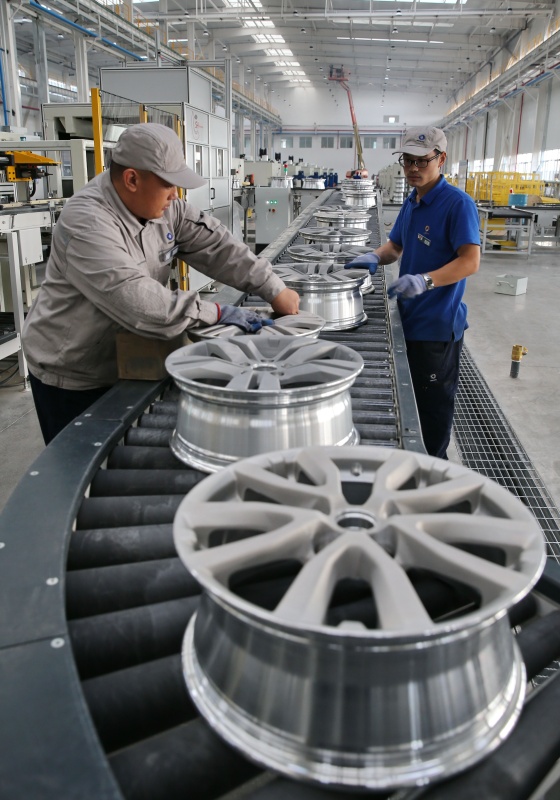 鋁合金車輪生產線 中秦興龍鋁合金車輪項目為產業園7個建設項目之一,鋁合金車輪投產為一期項目,總投資25億元,建設面積446畝,建設年產能300萬支高強度、輕量化鋁合金車輪。項目投產后,預計可實現年產值8億元,新增就業崗位500個。
