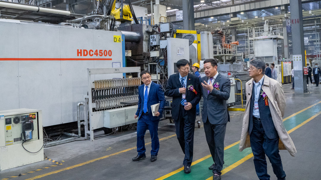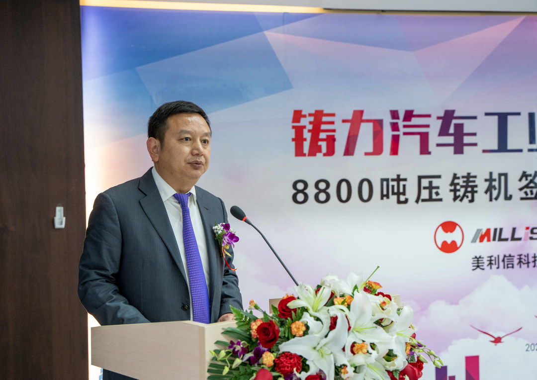 張立波會(huì)長(zhǎng)發(fā)表致辭 張立波代表中國(guó)鑄造協(xié)會(huì)對(duì)本次活動(dòng)表示祝賀,對(duì)兩家企業(yè)在各自領(lǐng)域取得的優(yōu)異成績(jī)表示贊賞。張立波指出,8800噸壓鑄機(jī)創(chuàng)造了世界之最,希望兩家企業(yè)以本次合作為新起點(diǎn),繼續(xù)開(kāi)發(fā)和應(yīng)用具有自主知識(shí)產(chǎn)權(quán)的優(yōu)秀智能裝備,建設(shè)具有國(guó)際領(lǐng)先水平的智能標(biāo)桿工廠,切實(shí)擔(dān)當(dāng)起推動(dòng)我國(guó)壓鑄“創(chuàng)新、綠色、智能發(fā)展”的行業(yè)責(zé)任!