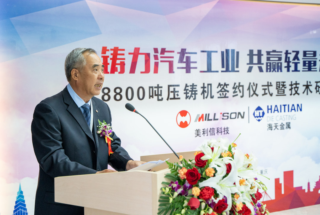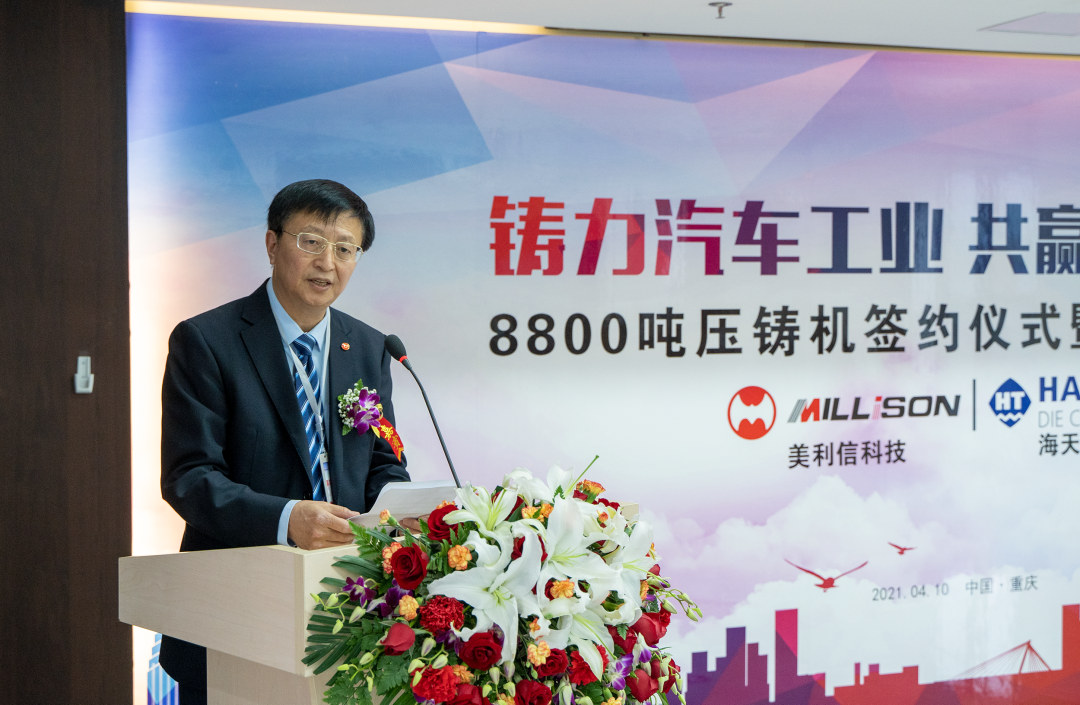 余亞軍總裁發(fā)表致辭 儀式上,余亞軍總裁表示:當(dāng)前,美利信科技聚焦“5G通信”和“新能源+智能網(wǎng)聯(lián)汽車”兩大前瞻領(lǐng)域,與全球優(yōu)質(zhì)客戶同步開(kāi)發(fā)新能源汽車零部件及大型結(jié)構(gòu)件的輕量化。海天金屬8800噸壓鑄機(jī)的引進(jìn),將徹底解決未來(lái)生產(chǎn)大型汽車結(jié)構(gòu)件的工藝瓶頸,實(shí)現(xiàn)全流程“中國(guó)智造”。美利信科技將繼續(xù)以振興民族工業(yè)為己任,與以海天為代表的國(guó)產(chǎn)優(yōu)秀裝備供應(yīng)商加深合作,共同推動(dòng)中國(guó)壓鑄產(chǎn)業(yè)的興旺發(fā)展,走向世界!