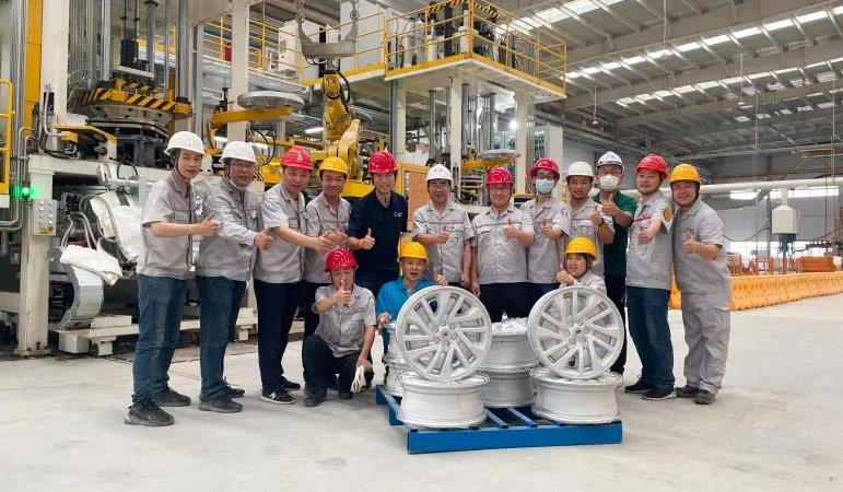 ![]() 壓鑄周刊(2021年6月25日 湖北隨州)日前,東風馬可迅車輪有限公司鑄造車間年產200萬只高端乘用車鋁輪項目首只鋁車輪成功下線。這標志著東風汽車底盤系統有限公司乘用車鋁輪項目建設,按計劃節點跨越關鍵里程碑向實現產品轉型升級、進入主流市場的戰略愿景邁出堅實一步。 據了解,東風馬可迅車輪有限公司由東風汽車零部件(集團)有限公司和馬可迅車輪集團合資建設,位于湖北隨州市高新技術產業園區,占地面積約147畝。項目于2019年簽約,2020年8月開工建設,目前建安工程及一期76萬只能力建設已經進入尾聲。