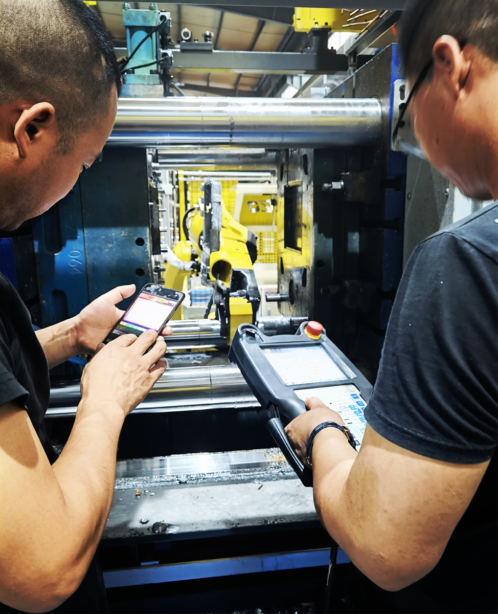 壓鑄生產車間的數字化管理 本月,梅橋工廠將再交付兩臺500T、800T冷室壓鑄機,以及配套的周邊設備。陳建雷先生表示:“今年年底前,我們計劃建成5條智能自動化壓鑄生產線,以滿足不斷增長的客戶訂單需求。至此,我們項目一期也將建設完成。我們計劃在2023年底前,完成項目二期建設,屆時我們的壓鑄產線將擴充至10條。整個壓鑄車間和所有壓鑄產線,我們都將按照高標準來規劃建設。”