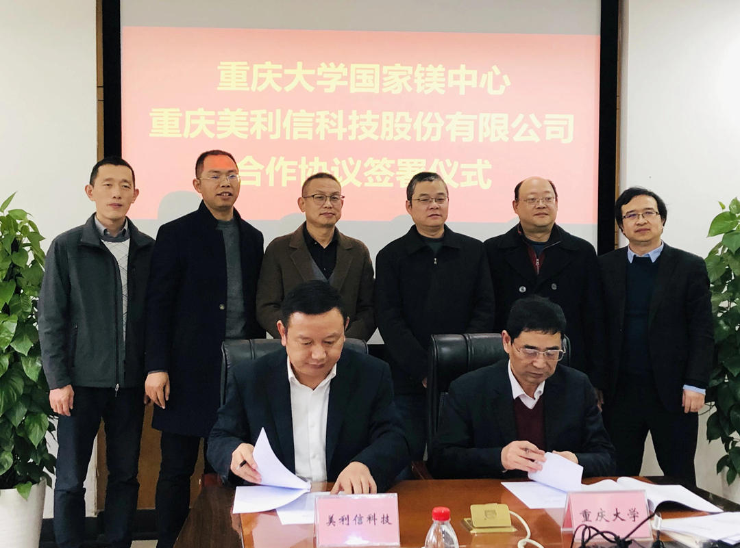12月16日,美利信科技與重慶大學國家鎂合金材料工程技術研究中心舉行了合作簽約儀式。中國工程院院士潘復生教授,重慶大學國家鎂中心主任張丁非教授、副主任蔣斌教授、副總工程師彭建教授,美利信科技總裁余亞軍、常務副總裁馬名海、技術中心主任張博、人力資源兼信息化總監張建明等出席了簽約儀式。