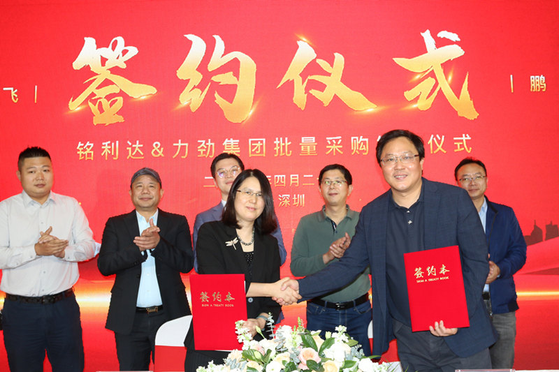 2022年4月20日下午,銘利達(dá)與香港力勁集團(tuán)旗下的深圳領(lǐng)威科技有限公司,在深圳力勁高新技術(shù)園舉行大型壓鑄單元批量采購戰(zhàn)略合作簽約儀式。 銘利達(dá)董事長陶誠、副總經(jīng)理盧常君、廣東銘利達(dá)副總經(jīng)理匡中華、力勁集團(tuán)CEO劉卓銘、深圳領(lǐng)威科技有限公司總經(jīng)理潘玲玲等代表出席簽約儀式。