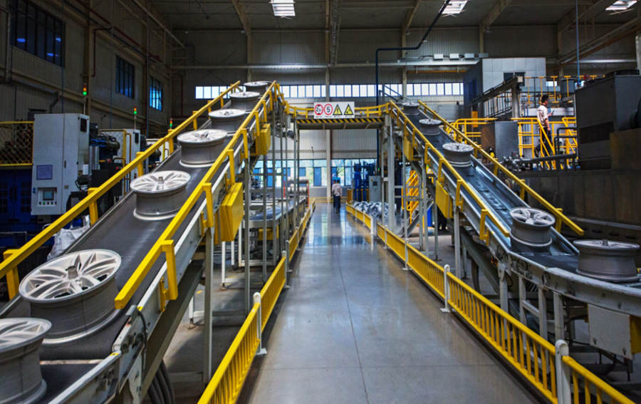中信戴卡南方智能制造基地總監(jiān)伍友兵介紹,中信戴卡車輪產(chǎn)業(yè)園自2017年項目開工以來,先后完成了四期建設(shè),累計鋁制輪轂?zāi)戤a(chǎn)能達(dá)1200萬只。據(jù)統(tǒng)計,2021年,車輪產(chǎn)業(yè)園已實現(xiàn)車輪產(chǎn)銷量同比增長35%,銷售收入超35億元,同比增長100%。今年一季度,車輪產(chǎn)銷同比增長39%,銷售收入同比增長92%。 伍友兵介紹,中信戴卡車輪產(chǎn)業(yè)園的占地面積約700畝,規(guī)劃產(chǎn)能達(dá)2000萬只鋁制輪轂。未來,這里將建成全球最大個性化車輪和全球整車配套生產(chǎn)單體最大的研發(fā)、制造基地。目前,中信戴卡生產(chǎn)的鋁制輪轂占據(jù)全球輪轂市場份額的33%。在國內(nèi),中信戴卡的輪轂市占率約為50%。