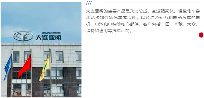 ![]() 面向汽車未來的智能鑄造 大連亞明與史杰克西建立值得信賴的合作伙伴關系 大連亞明汽車部件股份有限公司(以下簡稱“大連亞明”) 是中國領先的鋁合金高壓壓鑄產品供應商,為全球汽車行業(yè)和日本大品牌零部件公司提供產品。自 2008 年采用第一臺 Westomat 定量爐以來,大連亞明已經實現(xiàn)了許多生產方面的自動化,并調整了其工廠配置以適應新能源汽車零件的生產。大連亞明正著眼于生產更大的部件,以及整個大連工廠的IIoT 自動化改造,因此將其與史杰克西的合作視為發(fā)展的關鍵。