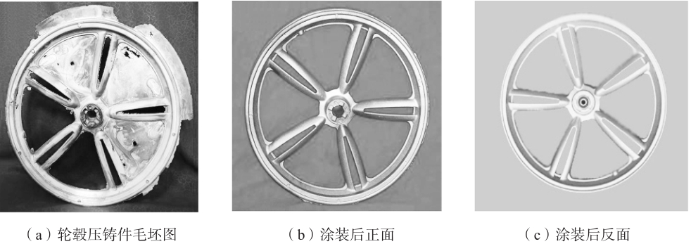表4 信噪比均值與極差 當(dāng)工藝參數(shù)為A1B3C1時(shí),采用ProCAST軟件進(jìn)行數(shù)值模擬,得到不考慮噪聲的缺陷體積(0.398 3 cm 3 )。當(dāng)受噪聲因素影響時(shí),缺陷的最大體積為0.436 1 cm 3 ,最小體積為0.319 9 cm 3 ,信噪比為8.211 4 dB,雖然比正交試驗(yàn)表中任何一組試驗(yàn)結(jié)果都大了一些,但也是信噪比值最大的,結(jié)果是一致的。 3、生產(chǎn)驗(yàn)證 通過(guò)ProCAST軟件模擬結(jié)合穩(wěn)健設(shè)計(jì)方法對(duì)壓鑄工藝參數(shù)進(jìn)行優(yōu)化下,得到的最佳壓鑄工藝參數(shù)為:壓射速度為0.9 m/s,鑄型溫度為260 ℃,澆注溫度為680 ℃。根據(jù)該工藝參數(shù)對(duì)鎂合金輪轂鑄件進(jìn)行的大批量生產(chǎn)驗(yàn)證,在實(shí)際生產(chǎn)中,壓鑄工藝參數(shù)分別取壓射速度為0.7~1.3 m/s,鑄型溫度為200~300 ℃,澆注溫度為650~710 ℃,結(jié)合生產(chǎn)效率需要,保壓時(shí)間設(shè)定為20 s。利用抗拉強(qiáng)度、伸長(zhǎng)率、硬度和沖擊韌性四個(gè)力學(xué)性能指標(biāo)進(jìn)行表征,生產(chǎn)實(shí)踐表明,當(dāng)壓射速度為0.8~1.0 m/s、澆注溫度為670~690 ℃、鑄型溫度為250~270 ℃時(shí),鑄件的生產(chǎn)效率最高,力學(xué)性能最好,即品質(zhì)最好。在最佳工藝參數(shù)下得到的輪轂鑄件(圖4),從圖4a可以看出,鎂合金輪轂壓鑄件充型完整,外觀無(wú)缺陷,經(jīng)機(jī)加工后的輪轂表面光滑,加工成產(chǎn)品后對(duì)表面進(jìn)行涂裝(圖4b、4c),外觀質(zhì)量美觀。最后對(duì)鎂合金輪轂鑄件進(jìn)行力學(xué)性能檢測(cè)結(jié)果為:抗拉強(qiáng)度為227 MPa、布氏硬度為HBS71、伸長(zhǎng)率為10.7%和抗沖擊韌性為18.7×10 4 J/m 2 ,以上力學(xué)性能表明,該輪轂鑄件達(dá)到了輪轂技術(shù)標(biāo)準(zhǔn)要求,輪轂鑄件內(nèi)部無(wú)嚴(yán)重缺陷,鑄件經(jīng)過(guò)大批量生產(chǎn)后,產(chǎn)品質(zhì)量穩(wěn)定,表明上述模擬結(jié)果準(zhǔn)確。