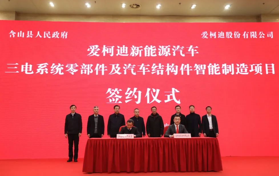 據了解,今年2月10日,愛柯迪與含山經濟開發區管委會簽署了關于分期建設新能源汽車三電系統零部件及汽車結構件智能制造項目的《投資協議書》。該項目由愛柯迪在含山經開區設立的愛柯迪(安徽)新能源技術有限公司作為實施主體。