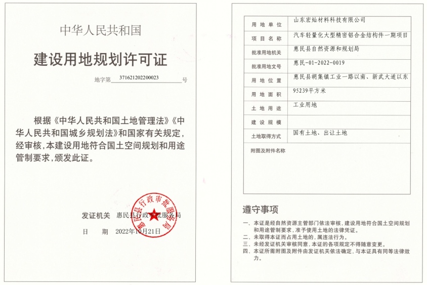 ![]() 日前(10月21日),山東宏燦材料科技有限公司,摘得位于山東省濱州市惠民縣的兩塊工業(yè)用地,主要用于汽車輕量化大型精密鋁合金結(jié)構(gòu)件一期項目。地塊一,占地面積57245平方米,位于山東省濱州市惠民縣高效經(jīng)濟(jì)區(qū);地塊二,占地面積95239平方米,位于濱州市惠民縣胡集鎮(zhèn)。據(jù)悉,山東宏燦材料科技有限公司,為中國宏橋集團(tuán)旗下企業(yè)。