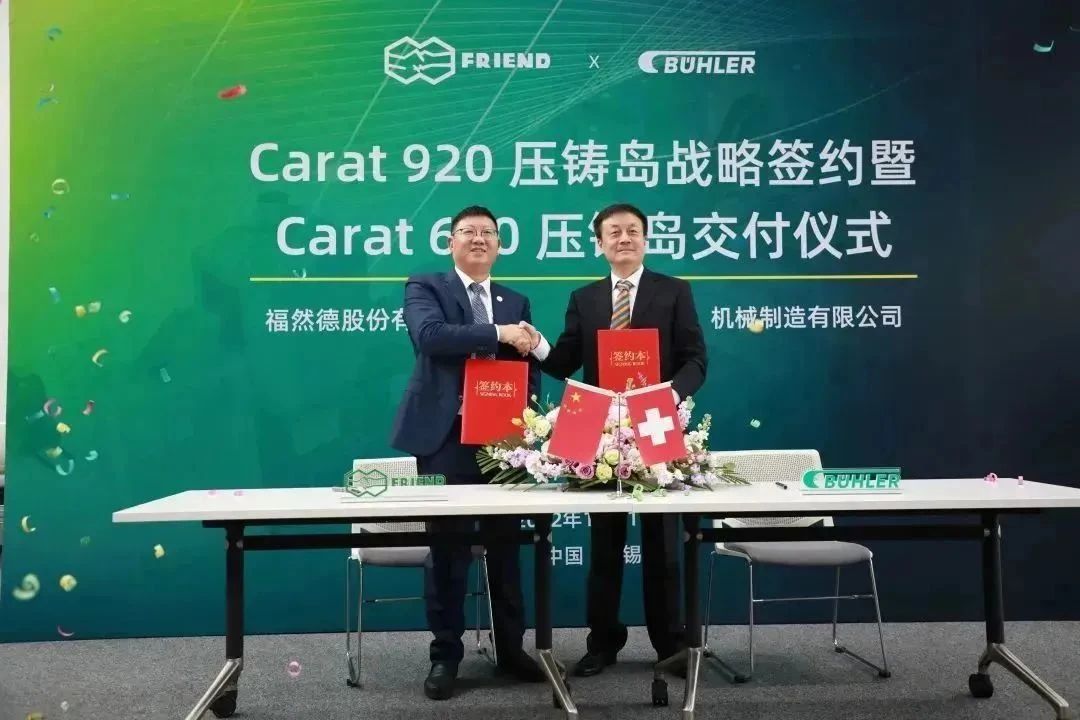 ![]() 5月23日,福然德股份有限公司(簡稱“福然德”)在2022年度業績說明會上表示,公司非公開定增募投項目之“新能源汽車鋁壓鑄建設項目”,目前廠房建設已基本完成,壓鑄島主體設備已完成安裝,其他配套設備正陸續安裝過程中。項目待設備全部安裝完成將進行聯動調試和試生產,后續則將根據實際進度情況進入正式投產階段。 據了解,福然德是一家提供鋼鐵供應鏈解決方案和服務的A股上市企業。為拓展新能源汽車一體化壓鑄領域,福然德于2021在安徽省舒城縣投資建設新能源汽車鋁壓鑄生產基地項目,并在當地設立全資子公司——安徽優尼科汽車科技有限公司(簡稱“優尼科”)作為項目實施主體。項目用地面積約120畝,建成約4.85萬平方米的工業廠房,主要生產汽車結構件、汽車底盤件及汽車零部件,預計產能為2萬噸。 據悉,該項目一期建設已采購了三套大型壓鑄單元,為布勒兩套 4400T 壓鑄島和1套 6100T 壓鑄島。2022年11月17日,采購的布勒 Carat 610 壓鑄島成功交付。同時,福然德還宣布,規劃擴建優尼科二期建設,并于2022年11月與布勒簽約復購兩套 9200T壓鑄島。