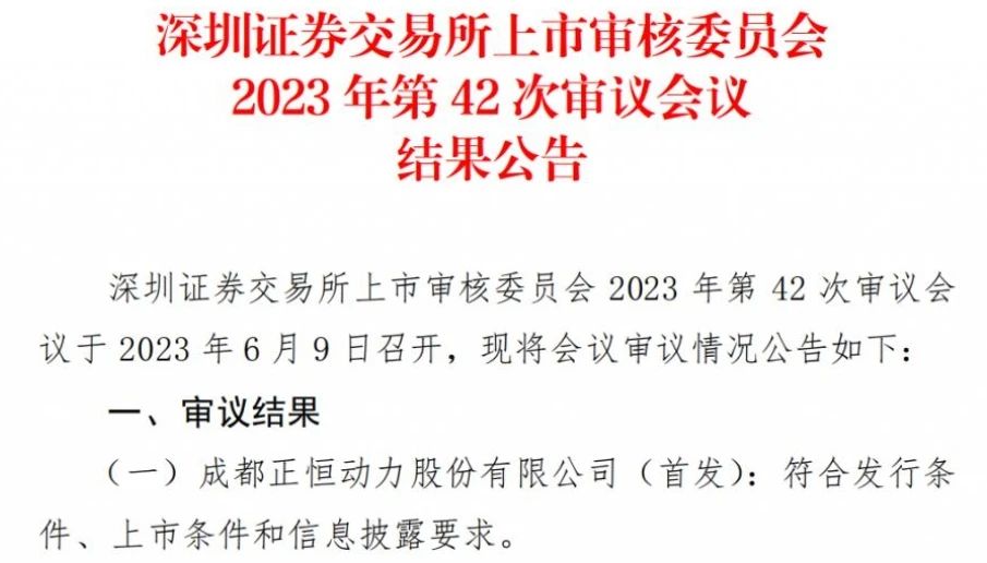 ![]() 近日(6月9日),深交所上市委2023年第42次審議會議結(jié)果顯示,成都正恒動力股份有限公司(簡稱“正恒動力”)首次發(fā)行股份并在創(chuàng)業(yè)板上市的申請獲通過。此舉意味著正恒動力IPO成功過會。據(jù)悉,正恒動力主要從事發(fā)動機缸體及各類鑄鐵、鑄鋁汽車零部件產(chǎn)品的研發(fā)、生產(chǎn)和銷售。