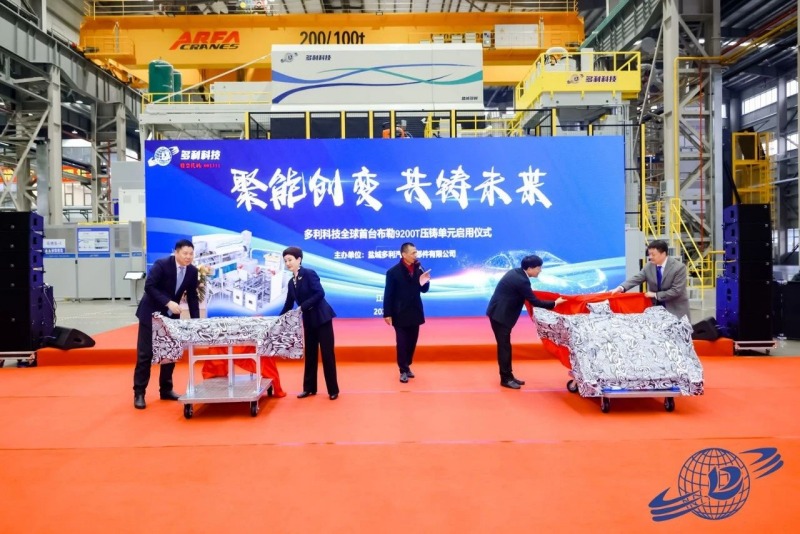 ![]() 瑞雪兆豐年!工廠外雪花飄飄,車間里熱鬧非凡。2023年12月18日下午,多利科技全球首臺布勒9200T壓鑄單元啟用儀式在多利鹽城工廠隆重舉行。這是繼6100T壓鑄單元之后,多利科技第二套超大型壓鑄單元正式投入生產。