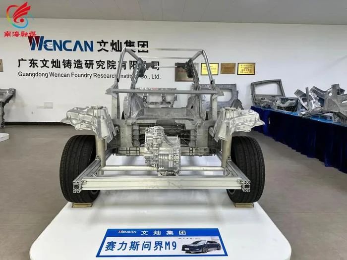 ![]() 9月24日,文燦集團(tuán)自主研發(fā)的第三套問(wèn)界M9車(chē)型新一體式大鑄件模具(也稱(chēng):大型一體化壓鑄模具)在佛山南海里水的文燦鑄造研究院順利下線,將裝車(chē)發(fā)往重慶。這標(biāo)志著文燦集團(tuán)在新能源汽車(chē)零部件制造領(lǐng)域取得了又一重大突破。前兩套模具已順利應(yīng)用于M9車(chē)身鑄件的生產(chǎn),顯著提升了車(chē)型的生產(chǎn)效率與結(jié)構(gòu)性能。 問(wèn)界M9車(chē)型采用的“玄武車(chē)身”技術(shù),利用一體化壓鑄制造方法,在9000噸壓鑄機(jī)的作用下,將原本需要222個(gè)零部件的復(fù)雜結(jié)構(gòu)壓鑄成僅10個(gè)集成零件。這一技術(shù)的實(shí)現(xiàn),除了依賴萬(wàn)噸級(jí)超級(jí)壓鑄機(jī)外,還需要精準(zhǔn)設(shè)計(jì)的一體式大鑄件模具,確保了鑄件的精確無(wú)誤。這一創(chuàng)新不僅推動(dòng)了新能源汽車(chē)產(chǎn)業(yè)向更高端、智能、集成、集聚、高效的方向發(fā)展,也展現(xiàn)了文燦集團(tuán)在技術(shù)研發(fā)和創(chuàng)新能力上的雄厚實(shí)力。