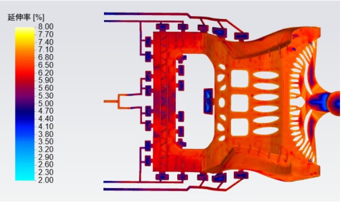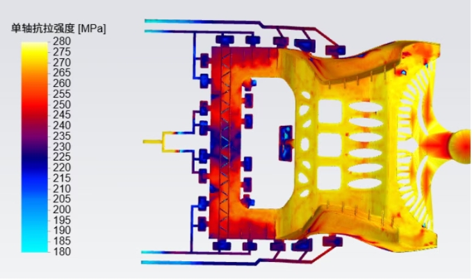 抱緊力與產品變形、模具應力及力學性能預測仿真結果示例 以壓鑄鋁合金發動機殼體為例,工程師可以在同一模型中同時模擬澆注充型、凝固熱傳遞和模具應力等多物理場過程,一次性獲得填充質量、缺陷分布和成型應力等全面結果,顯著提升仿真預測的專業可信度。 02 從“結果”到“決策”:打開瀏覽器即享實時處理 智鑄超云3.0的渲染引擎不僅更“快”,也更能“看得懂”,這是智鑄超云3.0的另一核心升級。 智鑄超云3.0版本引入內部數據渲染能力,意味著仿真完成后無需下載大型文件到本地,只需打開瀏覽器就能輕松加載、查看、處理完整CAE計算結果,進行切剖看內部流動、用顏色圖定位高應力/夾氣區等操作。 同時,渲染結果還支持多視口并行展示,可在同一頁面實時查看、對比壓力、速度、溫度等不同結果視圖,加速問題定位,輔助高效決策。
