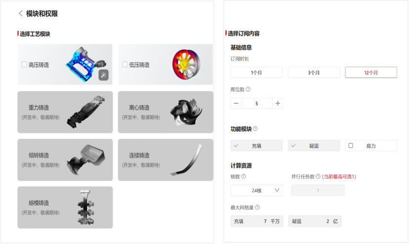 企業賬號數據統計與分析 升級后,將更方便企業/個人系統記錄使用數據、批量篩選管理、收藏歷史案例,導出符合自己業務視角的報表與視圖等,實現從被動響應到主動管理的轉變,更好地為企業和個人打造知識庫、進行項目資源標準化管理及生產決策賦能,逐步把“仿真結果”積累為可復用的知識資產。 04 自定義配置:更強易用性、更高靈活度 智鑄超云3.0版本支持用戶在開始仿真前選擇要輸出的結果類型和工藝參數,避免了無效參數錄入,并增加工藝節拍示意圖等,讓仿真流程與實際工藝更加貼合,也讓新用戶能夠更快上手;同時,支持用戶自定義工藝流程、自定義配置訂閱方案,無論是小團隊還是大客戶都可按自身需求定制化部署,靈活度更高。