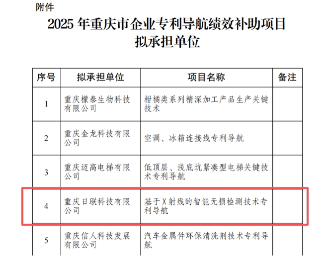 此次入選市級專利導航績效補助項目,是對日聯科技以知識產權驅動產業創新的權威認可。未來,公司將持續深化專利導航應用,加速創新鏈與產業鏈深度融合,為重慶建設“知識產權強市”及全球智能檢測裝備產業發展貢獻更大力量。 |