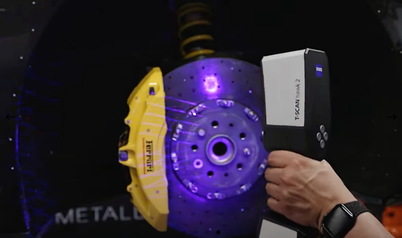 二、核心任務(wù):3D 掃描賦能輪罩與輪輞優(yōu)化,精度是關(guān)鍵 在車輛改裝,尤其是輪輞定制中,“精準(zhǔn)適配” 是不可突破的底線 —— 既要保證新輪輞與法拉利 F12 Berlinetta 的車身尺寸完全匹配,又要檢查輪罩是否存在磨損,避免影響車輛美觀與行駛安全。而此次對法拉利輪罩的 3D 掃描,主要基于兩大核心需求: 1.mbDesign 作為輪輞制造商,缺乏該特定車型(法拉利 F12 Berlinetta)的精準(zhǔn)數(shù)據(jù),無法直接開展定制化設(shè)計; 2.需通過掃描獲取輪罩的三維數(shù)據(jù),生成數(shù)字模型,為后續(xù)輪輞的適配設(shè)計與制造提供數(shù)據(jù)依據(jù)。 掃描過程:簡單高效,精度拉滿 蔡司 ZEISS T-SCAN hawk 2 的操作流程極為便捷,僅需兩步即可完成數(shù)據(jù)采集: 1.前期準(zhǔn)備:在輪罩掃描區(qū)域預(yù)先粘貼少量參考點,這些參考點將成為掃描儀定位數(shù)據(jù)的 “基準(zhǔn)坐標(biāo)”; 2.現(xiàn)場掃描:手持掃描儀對整個輪罩進行掃描,憑借其 0.02mm 的超高精度,能捕捉到輪罩表面最微小的細節(jié)(如細微磨損、尺寸偏差);同時,手持式設(shè)計帶來了極強的現(xiàn)場靈活性,無需復(fù)雜固定即可適配不同掃描角度,短短幾分鐘內(nèi)就能完整收集車輪懸架與輪罩的所有關(guān)鍵尺寸。 最終生成的輪罩 “數(shù)字孿生” 模型,為后續(xù)輪輞的個性化設(shè)計與調(diào)整提供了精準(zhǔn)、可靠的基礎(chǔ)數(shù)據(jù),從源頭避免了 “設(shè)計與實物不符” 的問題。