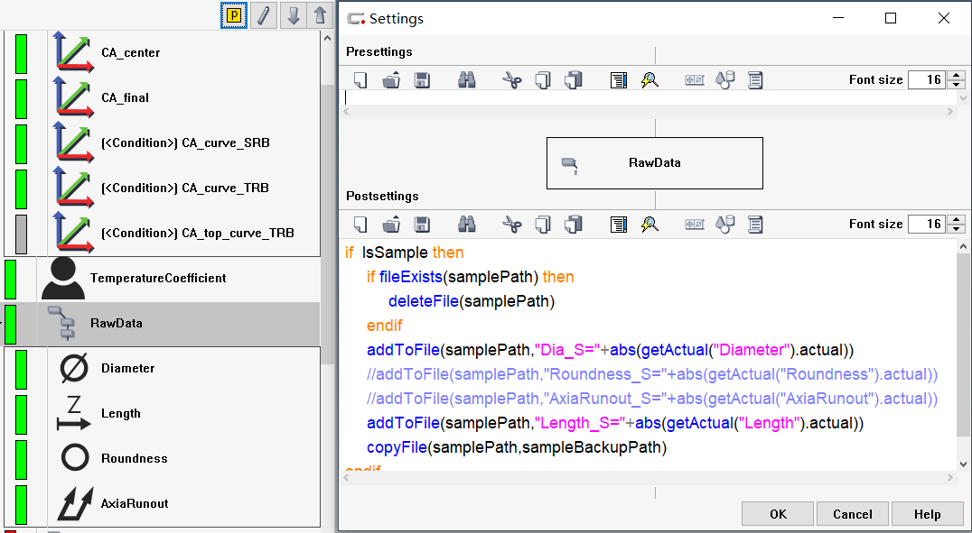 上圖展示了一部分程序界面,如果我們沒有PCM模塊,可否實現(xiàn)根據(jù)零件的尺寸設(shè)置測量策略的功能呢?答案是可以的! 軟件中默認提供了6種通用策略,他們根據(jù)不同的探頭類型分為功能性檢查和過程能力分析類檢測,它們只能調(diào)用,不可編輯。