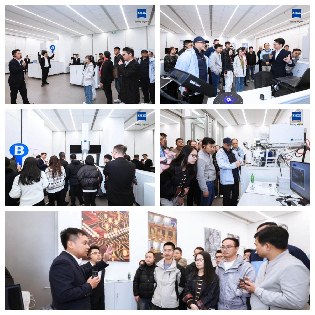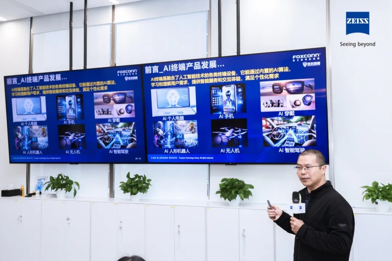 我們將 AI 作為核心轉型戰略,以算力基礎設施為基礎,拓展 AI 服務器制造與算力應用落地能力,依托全球生產基地與垂直整合優勢,支撐大模型訓練與應用部署需求。 在智能制造層面,融合 AI 質檢技術與高精度檢測能力,構建全流程智能檢測體系,強化缺陷識別、尺寸校驗與工藝優化,以數據驅動提升生產效率與良率,夯實 AI 智造核心競爭力。 在消費端與產業端,我們持續布局智能穿戴、機器人、智能駕駛等多元應用場景,通過技術協同與生態共建深化場景落地,雙方的長期合作為全鏈條產品的可靠性與規?;l展提供堅實支撐。 技術實景展示:從方案到應用 論壇議程緊密圍繞AI智能終端產業鏈的失效分析等檢測需求展開,在技術分享環節,蔡司技術專家分享了AI智能終端的質量解決方案,涵蓋AI眼鏡、AI手表、AI耳機、AI手機,以及AI服務器等最新應用檢測需求。優爾鴻信及相關供應鏈企業則介紹了AI智能終端領域的前瞻布局經驗和供應鏈中關鍵產品的品控實踐與挑戰。 在蔡司東莞質量卓越中心的參觀環節中,參會者實地觀摩了在電子領域不同應用場景下的質量檢測實操演示。通過蔡司FIB-SEM(聚焦離子束掃描電鏡)、金相顯微鏡(Axio Scope5)、三坐標測量機(ZEISS PRISMO系列、ZEISS SPECTRUM系列、ZEISS CONTURA系列)、工業CT(ZEISS METROTOM系列)、以及三維掃描儀(ZEISS ATOS Q)等設備的動態運行,以及軟硬件模塊化靈活配置的生動演繹,直觀了解在面對AI眼鏡、智能手表、耳機等可穿戴設備的精密微型化的極致挑戰下,蔡司尖端技術為微型傳感器、緊湊光學鏡頭及復雜內部結構提供無損檢測和精密測量的關鍵保障,以創新質量方案驅動新一代AI硬件的研發與智造升級。