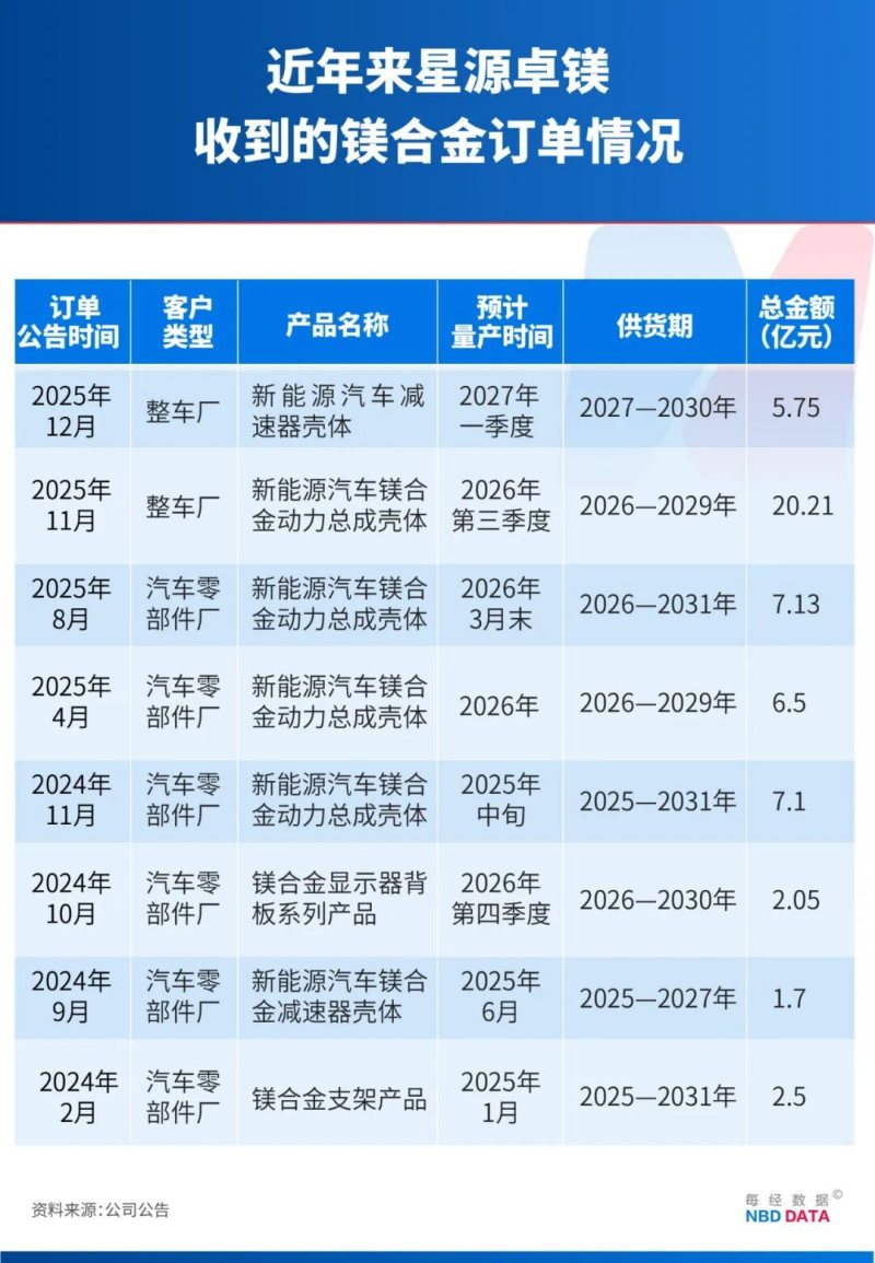 從白云石(一種以碳酸鈣鎂為主要成分的天然礦物)資源開采、冶煉提純、合金配方優化,到半固態成型等核心工藝,我國已經實現了全鏈條關鍵環節的自主可控,不存在被海外“卡脖子”的風險,供給穩定性和安全性極高。 這種全產業鏈的掌控力,意味著當汽車行業的需求爆發時,國內能夠迅速響應,形成規模效應,進一步鞏固成本優勢。“汽車行業是鎂合金的絕對消費主力,占比高達70%,主要用于儀表板支架、座椅骨架、方向盤等部件,正開辟全新的增長曲線。”廣西汽車集團方面稱。 面對這一歷史性機遇,國內產業鏈各環節的企業已開始加速布局。在上游,寶武鎂業已形成完整的產業鏈閉環。 五礦證券研報提到,截至2025年4月底,寶武鎂業擁有10萬噸原鎂產能及20萬噸鎂合金產能。另外,公司在周湖新建5萬噸原鎂產能,在五臺新建10萬噸原鎂和10萬噸鎂合金,在青陽新建25萬噸原鎂和30萬噸鎂合金產能。新建產能投入后,合計原鎂和鎂合金將會分別達到50萬噸和60萬噸。 在中游制造端,一批技術壁壘高、成長性強的企業正成為價值高地。星源卓鎂深耕高端鎂鋁壓鑄領域,其產品已應用于寶馬、奧迪、保時捷、蔚來等多個品牌。春秋電子則從消費電子結構件領域跨界而來,憑借在鎂鋁結構件加工精度、速度和良率上的優勢,已切入小米、蔚來、小鵬、比亞迪等車企的供應鏈。 東興證券在其研報中預測,全球汽車行業鎂合金需求將從2025年的42.1萬噸增長至2028年的106.1萬噸,年均復合增長率高達36%。