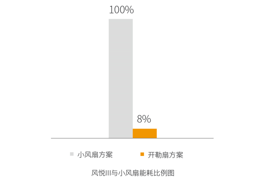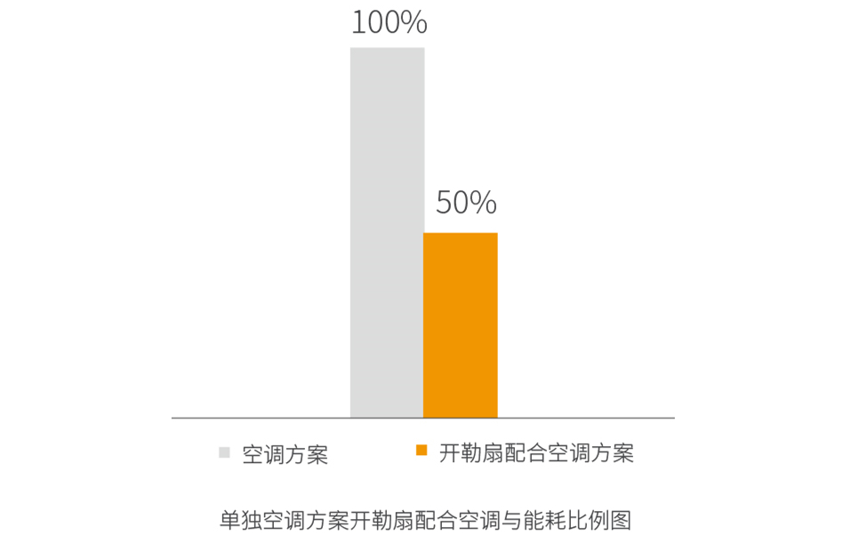 與使用空調對比 以10000㎡10米高的廠房計算,如果使用空調,每小時電費就可高達500元,一天開工8小時,一個月電費就高達12萬。而用“開勒扇”的話,裝10臺就可解決,以額定功率計算每小時1.5Kw,每月電費僅需2000元,是空調的1.7%。如果一年開3個月風扇,就可省下電費35.4萬。這樣15年,算下來僅電費就可省下531萬!