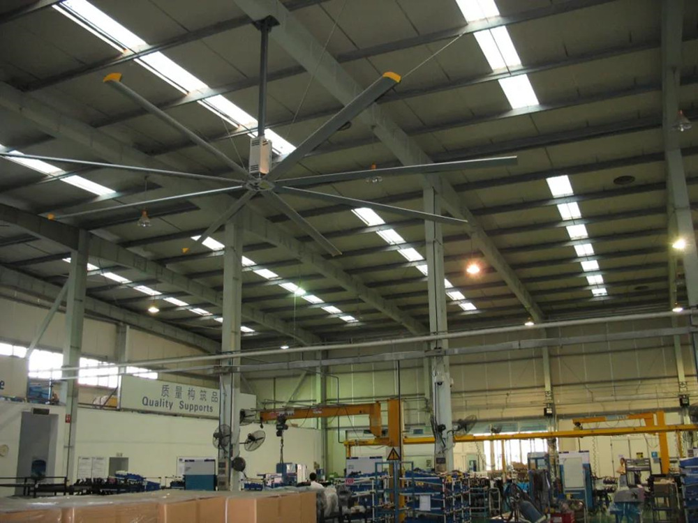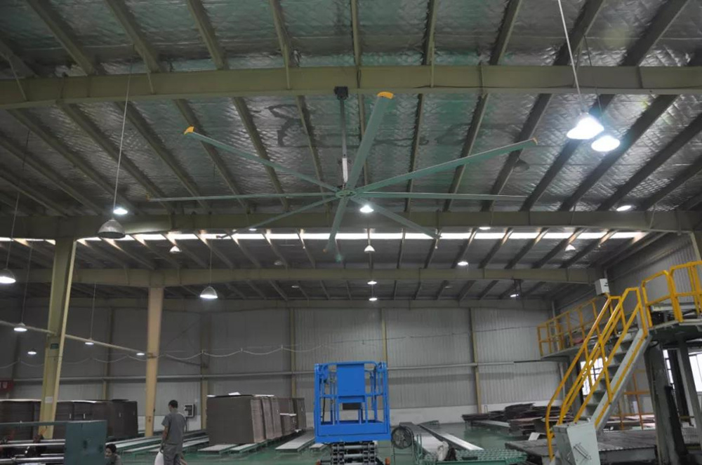 開勒環境自2010年推出“開勒扇”后,已在全國各行業10000多家工廠良好運行,其中世界500強企業173家。廣泛應用于工業廠房、物流倉儲、候車室、展覽館、體育館、商超等等高大空間,作為空間通風、人員降溫的首選解決方案。 通風降溫 開勒扇功率低于1.5KW,扇葉直徑達7.3米,通過扇葉驅動氣流下壓至地面后向四周擴散,在空間內形成3米上下的紊流風層,風速在1.2米至4.3米每秒之間,使用者根據環境氣溫變化可通過無極調速至最佳體感溫度。單臺覆蓋面積超過1500平米,夏季人體感受溫度可下降5-8℃,可淘汰傳統掛壁式工業小風扇,也可以配合空調使用,甚至在某些條件下可以替代空調。