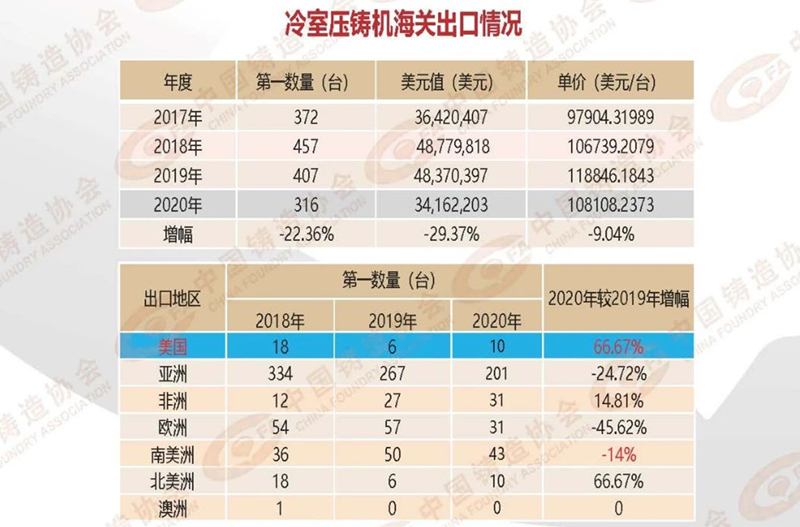 冷室壓鑄機(jī)出口數(shù)據(jù)統(tǒng)計(jì),2020年出口316臺(tái),減少22.36%。其中出口北美洲較2019年增長(zhǎng)66.67%;出口非洲較2019年增長(zhǎng)14.81%。 |