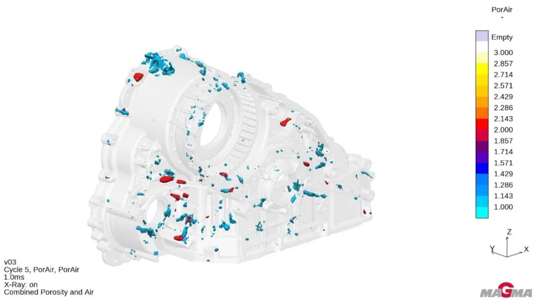 凝固過程中的熱對流影響補縮 改進中的鑄鐵模塊 鑄鐵廠可以使用全新的功能,衡量冶金和金屬處理對凝固和補縮行為的影響。借助創新的SMAFEE補縮算法,用戶可以更好地了解熔體質量,孕育效果以及局部壓力分布對縮孔的影響。 此外,凝固過程中的熱對流,現在被當作是鑄鐵的一項標準選項。熱對流會影響溫度的分布,從而影響到大鑄件和批量生產件的補縮行為。新的補縮模型適用于所有類型的鑄鐵:球墨鑄鐵,灰口鑄鐵和蠕墨鑄鐵。 壓鑄中的質量評估 在高壓壓鑄中,卷氣和縮孔缺陷是造成廢品的主要原因。因此,模具和工藝設計非常注重降低因卷氣引起的氣孔。使用MAGMASOFT®5.5可以可靠地預測型腔內空氣的質量平衡和所卷氣體的移動。在新的“氣體”結果中,可以看到型腔內和熔液中氣體的定量結果,并可以在整個填充過程中進行全面評估。在項目的整個開發過程中,即使在變化的工藝條件下,也可以持續評估模具設計的質量和工藝條件。
