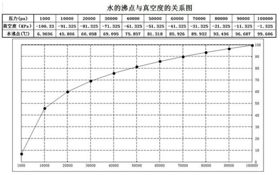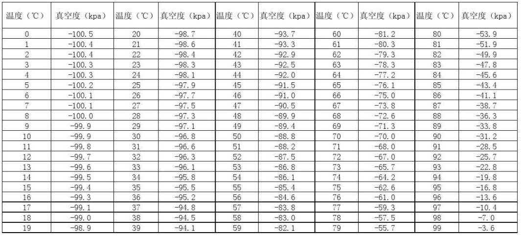 真空干燥清洗系統(tǒng) 水不同溫度的沸點(diǎn)與對(duì)應(yīng)真空度關(guān)系表