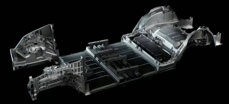 然后是3月、4月,特斯拉柏林工廠和得州工廠先后開業,鋪天蓋地的報道和一條無人機高難度穿越柏林工廠生產線拍攝的視頻讓“一體化壓鑄”再次被頻繁提起。 全世界汽車生產的四大工藝都是沖焊涂裝,第一步將鋼板沖壓成小零件,然后把小零件焊接成大部件乃至白車身。特斯拉一體鑄造是把沖壓改為壓鑄,前兩步合成一步,直接鑄造出大部件。 這不僅改變了沖焊涂裝的汽車制造四大工藝,更是從思維上對傳統造車方式的改造。 最先采用該技術的Model Y后車架原本由70個零件沖壓、焊接而成,一體化壓鑄把它變成了一個零件,制造時間從1-2小時縮短至45秒-2分鐘,制造過程減少了300臺機器人,同時縮短生產線,節省30%占地面積。人工方面,主流汽車工廠焊裝車間要配 200~300 名工人,一體式壓鑄車間只需要 20-30 名工人。特斯拉官方稱一體化壓鑄技術將給 Model Y節省約 20%制造成本。 也就是說,零部件的70合一有多方面的優勢,可以讓車身輕量化,節省成本,提高效率,縮短供應鏈,整車的制造時間和運輸時間縮短,減少人工和機器人,提升制造規模。