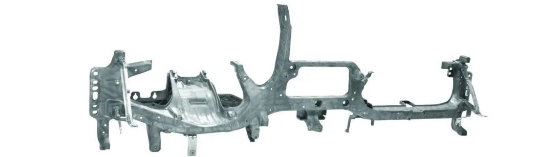 產品描述:高負載部件,在動態負載下也必須提供非常高的剛度,以消除振動,例如在方向盤或抬頭顯示器區域的振動。此外,該組件必須具有高度的變形能力(例如在碰撞行為中)。 設計、鑄造和成型要求:在有限的安裝空間內滿足相應的要求,這意味著必須靈活地設計鑄件中的橫截面。加強筋的設計要滿足應力載荷變化,采用仿真模擬對充型和凝固行為進行持續評估。在鑄件中集成盡可能多的不同功能(附加部件的連接、支架的集成等)。 采用壓鑄方法的原因:由于安裝空間非常有限,壓鑄提供了最優化的利用自由空間的可能性,從而使結構更適合于應力載荷情形。此外,鎂的使用使其有可能在低重量的情況下實現高應力。