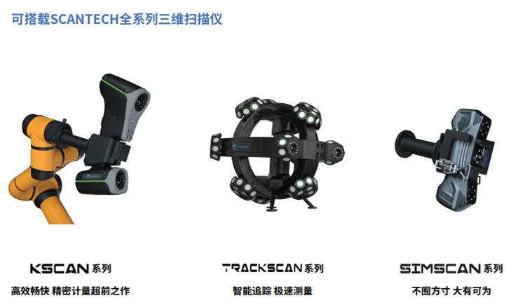 輕松部署 無限拓展 AM-DESK平臺主體僅重75kg,僅需1㎡占地面積,提供110-220V市電,5分鐘內便可輕松構建自動化檢測工位;搭配移動式集成底座,外形更緊湊輕便,可隨心布置;支持多個外接變位機,可組網,即插即用,自動切換運行路徑,進一步提升測量效率;支持不同品牌型號協作機器人,可搭載SCANTECH全系列三維掃描儀。