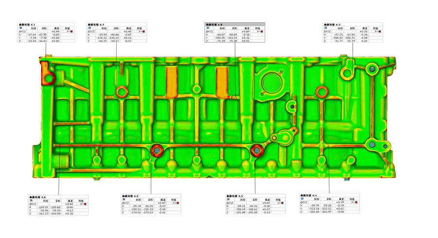 同時,得益于3D掃描儀輕巧便攜的特性,可實現(xiàn)多件產(chǎn)品件的掃描測量與后續(xù)調(diào)整處理任務(wù)交叉并行,互不沖突,實現(xiàn)檢測流程的優(yōu)化。 數(shù)據(jù)全面:從傳統(tǒng)單點檢測提升至全域檢測 相較于傳統(tǒng)檢測方式,針對部分點位的測量,利用思看科技藍(lán)光3D掃描儀進(jìn)行數(shù)據(jù)采集,數(shù)據(jù)全面,成功將單點檢測提升至全域檢測。 即便是結(jié)構(gòu)復(fù)雜的工件,利用思看科技3D掃描儀,也能成功捕獲其3D信息,數(shù)據(jù)全面可靠。