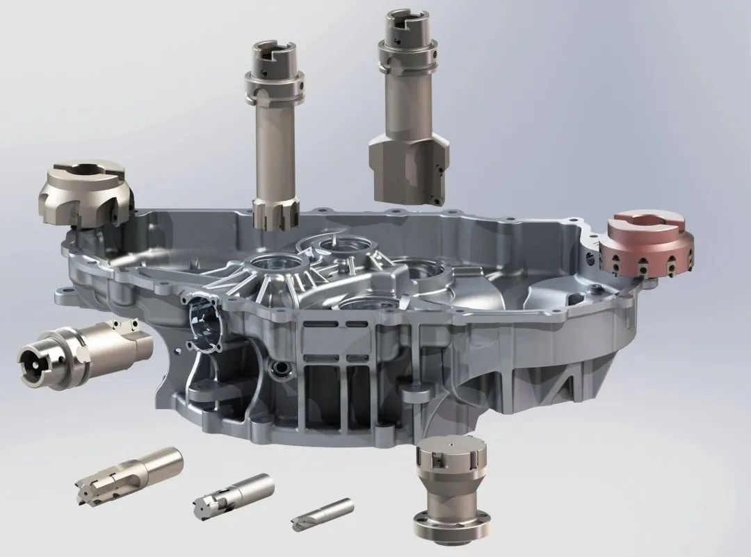 變速器殼體及(刀具)加工方案 針對各類壓鑄件及鋁合金鑄件的精密機加工,冶戈工具公司積累了豐富的技術、制造及應用經驗,可為客戶提供缸蓋加工方案,缸體加工方案,油底殼加工方案,變速器殼體加工方案,電機殼刀具方案,轉向節加工方案,轉向器加工方案,控制臂、副車架加工方案,以及渦輪蝸殼刀具、渦盤刀具、閥芯孔刀具,等等。