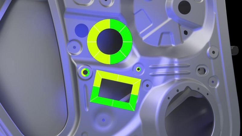 激光測(cè)量系統(tǒng)無損演繹手持情況下2,600,000次/秒超高測(cè)量速率、0.025 mm計(jì)量級(jí)測(cè)量精度;同時(shí)還支持全新灰度值邊界檢測(cè)功能,自動(dòng)提取孔特征,輕松獲取沖壓件或機(jī)加件的圓孔、圓槽、方孔等封閉類特征的高精度三維數(shù)據(jù)。