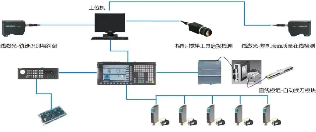 據悉,本次展示的C型攪拌摩擦焊裝備系AEE的拳頭產品。該裝備采用C型結構設計,占地面積小,整體剛性佳,精度保持性久,耐磨性佳,安全可靠;搭載西門子828D數控系統,可擴展恒壓力控制,具有刀具壽命監控、示教、焊接追溯等功能;能很好地滿足2-8mm 鋁合金平面二維焊接需求,實現水冷板、電控盒等系列產品的全面覆蓋。值得一提的是,C型攪拌摩擦焊設備還具有強大的刀具磨損檢測、自動換刀(檢測/換刀時間均低于5S),以及表面質量在線檢測功能.